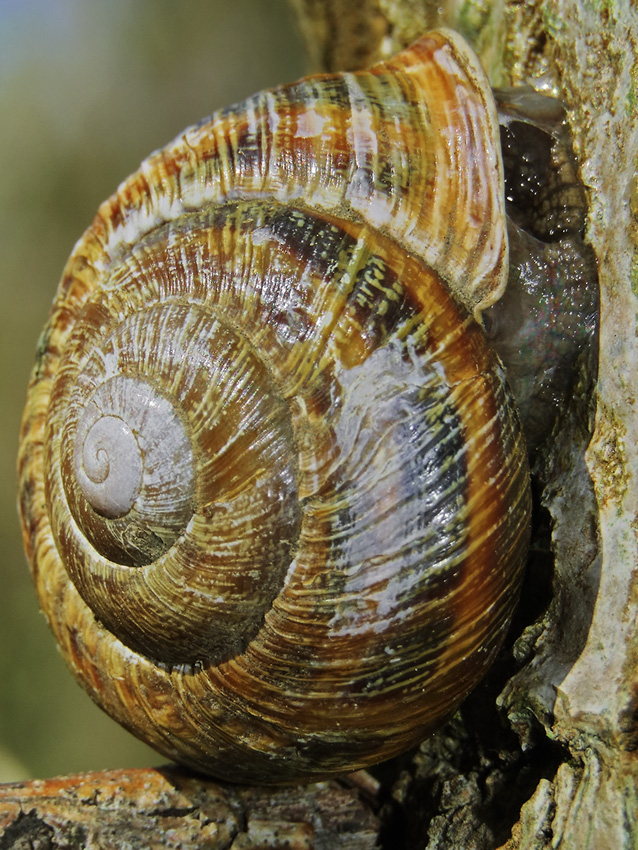 Комментарий. Caucasotachea atrolabiata, или кавказотахея черногубая. Типичная (полосатая) разновидность. Семейство Helicidae.