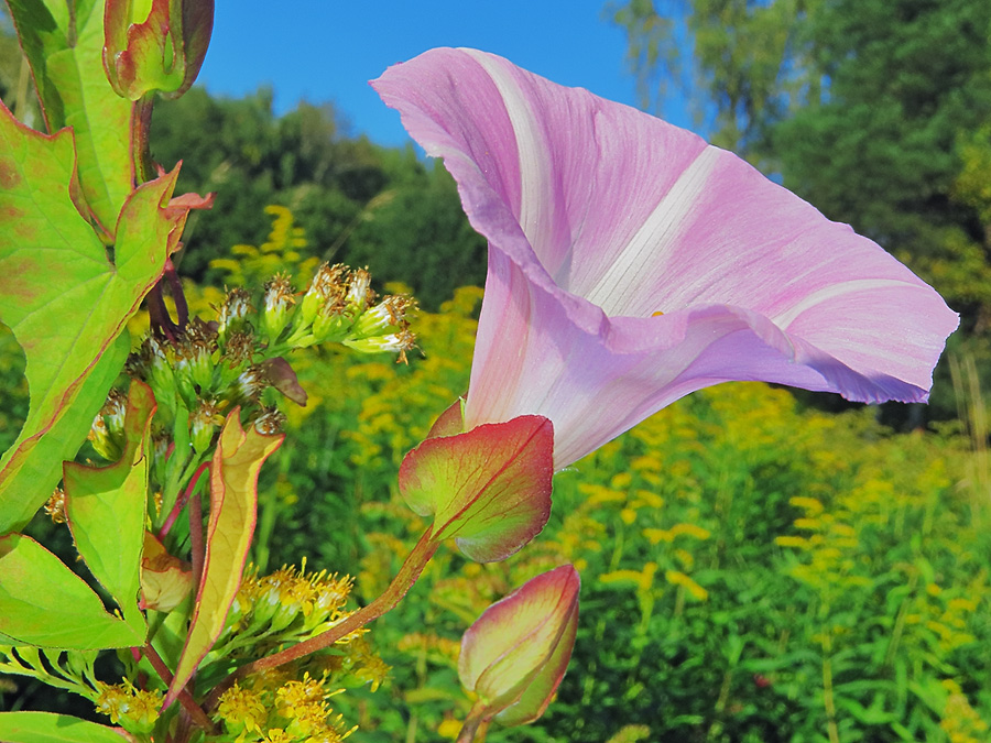 В Измайловском парке этот вьюн - один из представителей "странного" растительного сообщества, к появлению которого явно приложили руку люди. Широкие, тянущиеся через лесной массив просеки, проложенные для строительства ЛЭП, как оказалось, послужили своеобразным "полигоном" для ботаников, высадивших там ряд видов, не свойственных природе Средней Полосы России.