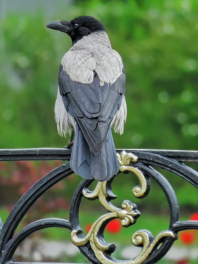 В Екатерининском сквере, буквально в нескольких шагах от помпезного памятника императрице, серая ворона (Corvus cornix), как