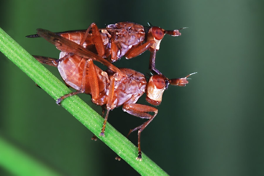 Небольшие красновато-коричневые мушки, подобно цирковым артистам, исполняли сложный