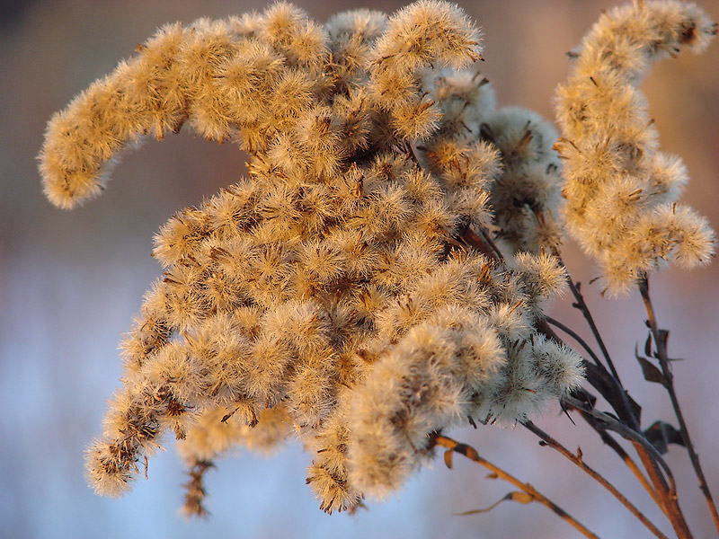 Золотарник канадский (Solidago canadensis) - украшение зимнего парка и излюбленное лакомство птиц: снегирей и щеглов. Достигая двух метров в высоту, жёсткие стебли этих растений не поникают с первыми морозами, а остаются стоять в снегу до следующего лета, разнося по ветру