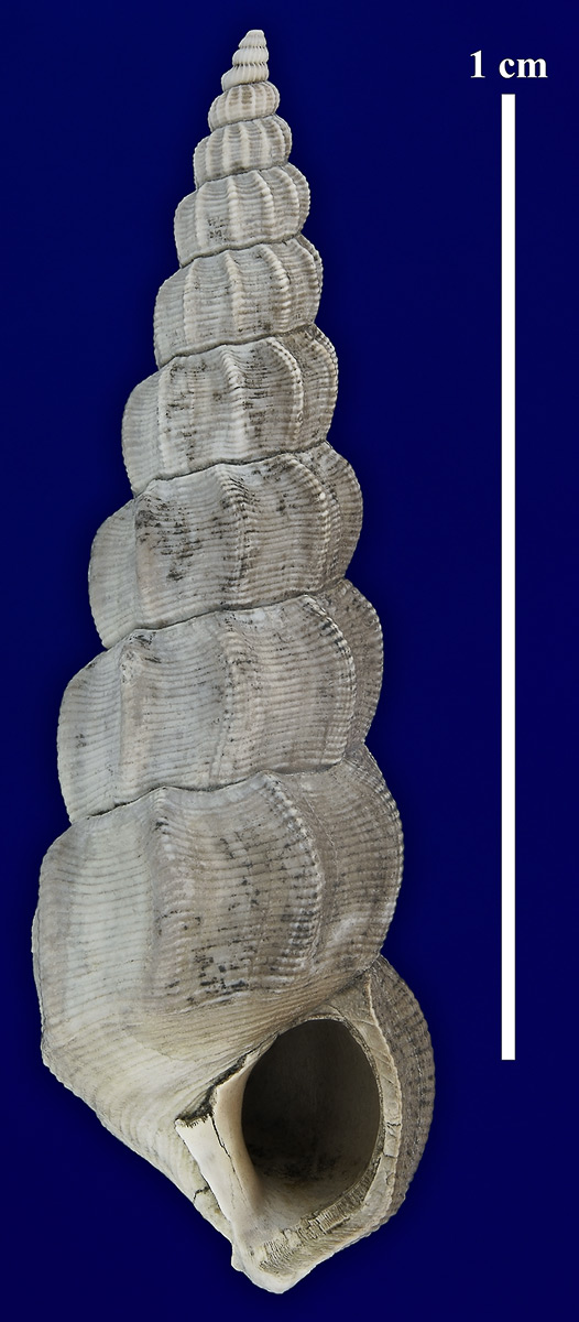 Размеры. Высота раковины около 13,1 мм. Длина масштабного отрезка равна 1 см.
