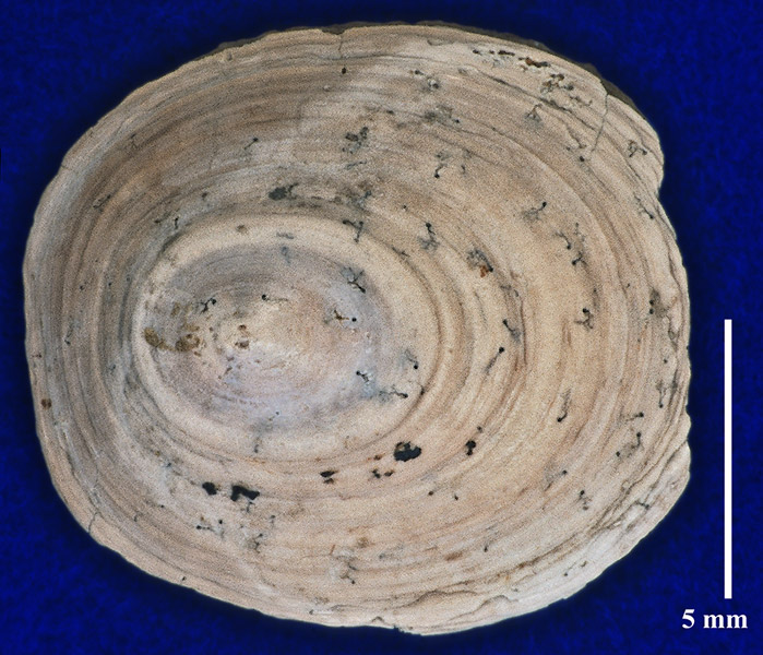 Размеры. Длина раковины около 12,1 мм. Длина масштабного отрезка равна 5 мм.