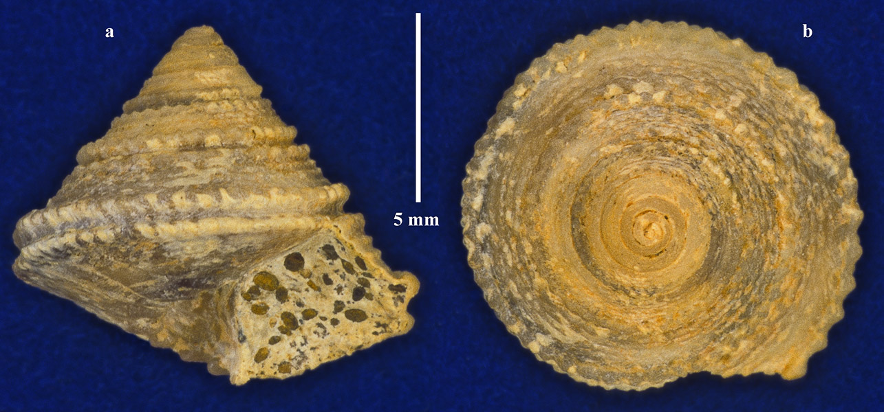 Размеры. Высота раковины около 9,5 мм. Длина масштабного отрезка равна 5 мм.