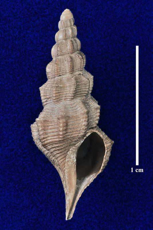 Размеры. Высота раковины (вместе с устьевым отростком) около 17,7 мм. Длина масштабного отрезка равна 1 см.