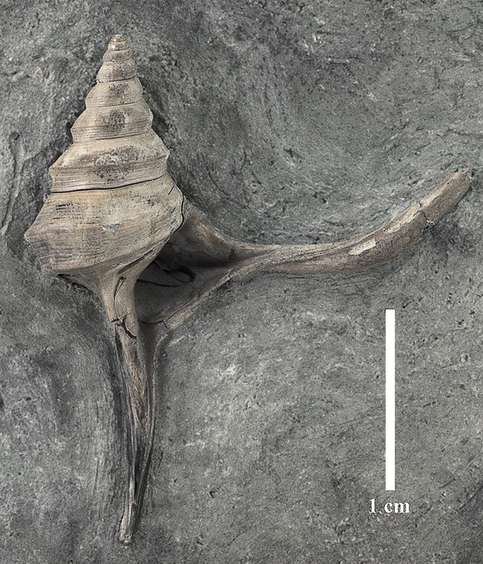 Раковина на вмещающей породе с сохранившимися протоконхом и устьем.