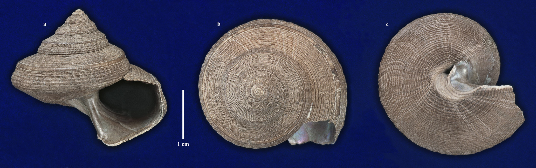 Размеры. Высота раковины около 27,9 мм, максимальный диаметр около 32,3 мм. Длина масштабного отрезка равна 1 см.