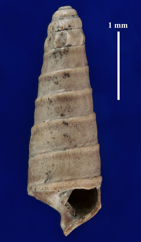 Размеры. Высота раковины около 3,38 мм. Длина масштабного отрезка равна 1 мм.