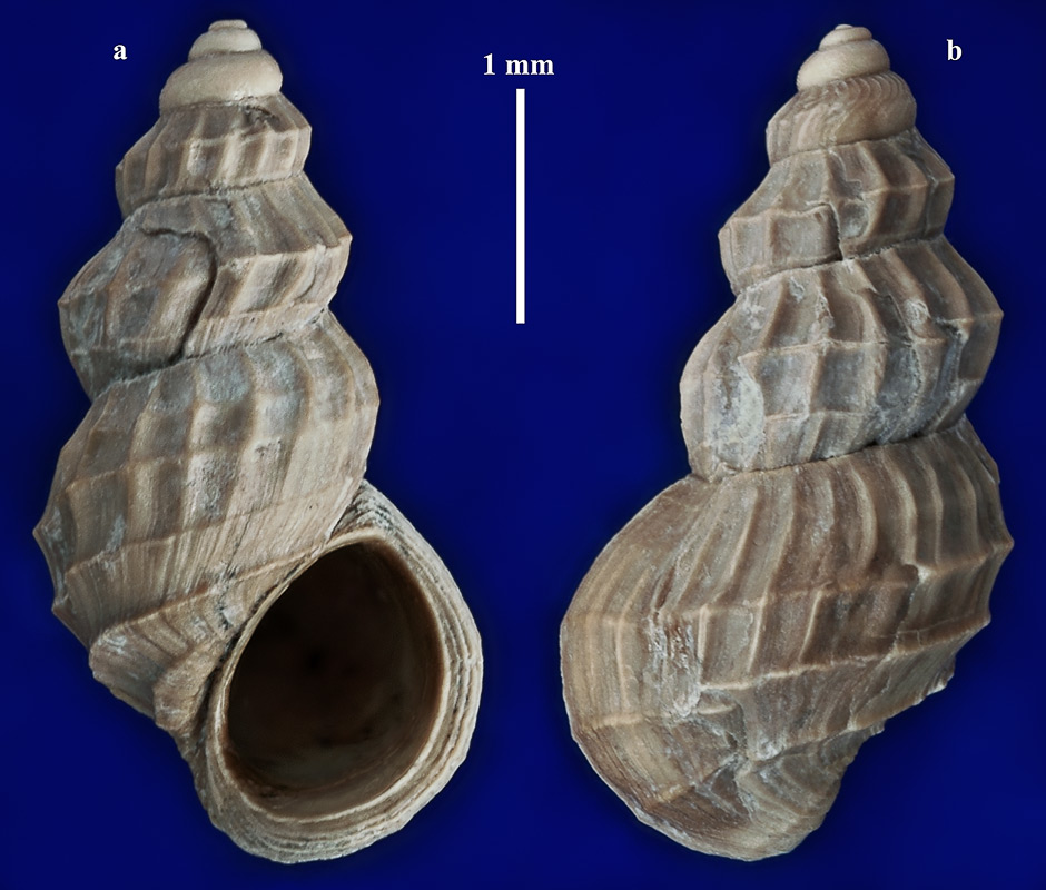 Размеры. Высота раковины около 3,6 мм. Длина масштабного отрезка равна 1 мм.