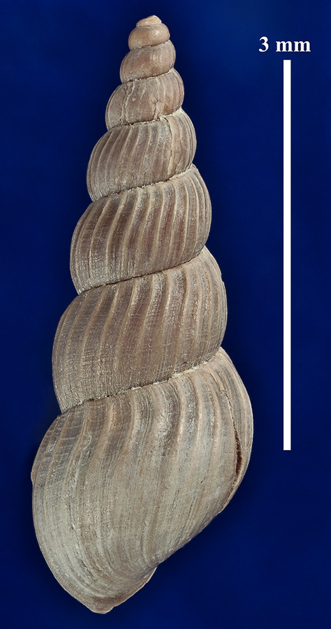 Размеры. Высота раковины около 4,6 мм. Длина масштабного отрезка равна 3 мм.