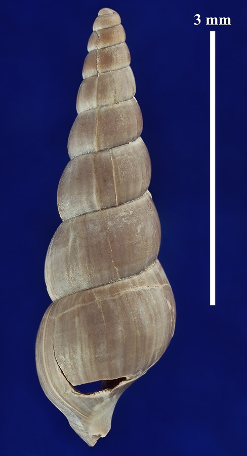 Размеры. Высота раковины около 4,8 мм. Длина масштабного отрезка равна 3 мм.