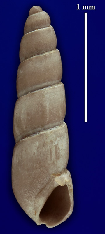 Размеры. Высота раковины около 2,03 мм. Длина масштабного отрезка равна 1 мм.