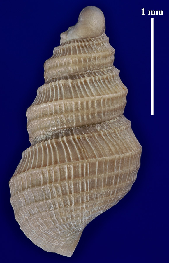 Размеры. Высота раковины около 2,6 мм. Длина масштабного отрезка равна 1 мм.