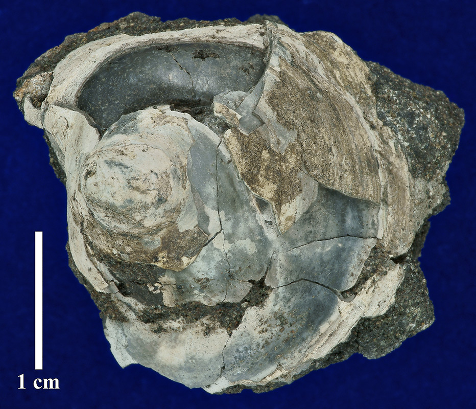 Внутренне ядро взрослой особи с частично сохранившейся раковиной. Вид сверху.