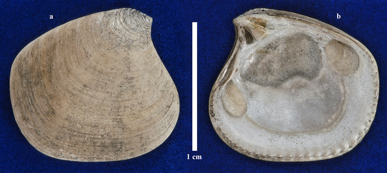 Правая створка раковины. a - вид с наружной стороны; b - вид с внутренней стороны.