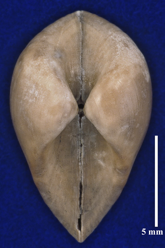 Размеры. Длина створки около 12, 8 мм; высота - около 8,3 мм; толщина - около 7,8 мм. Длина масштабного отрезка равна 5 мм.