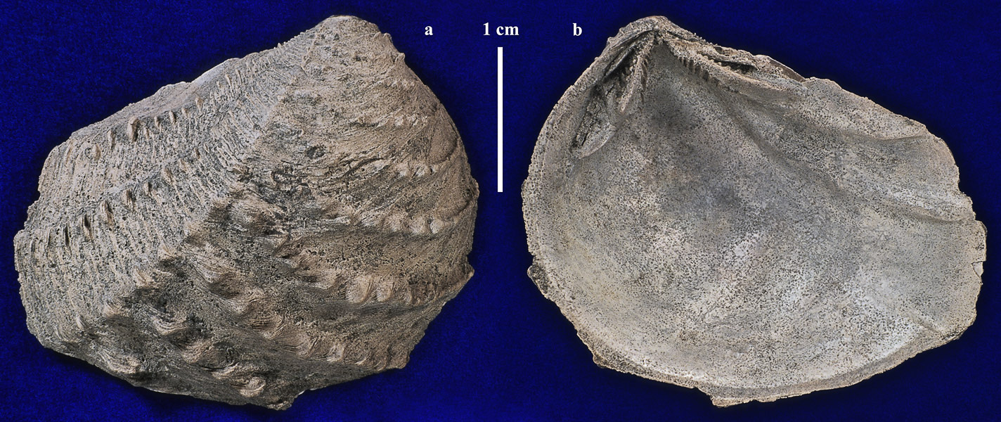 Правая створка раковины. a - вид с наружной стороны; b - вид с внутренней стороны.