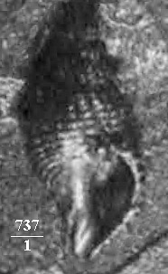 Раковина на вмещающей породе. Вид со стороны устья.