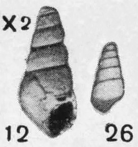 Фиг. 12 - вид со стороны устья (x2); фиг. 26 - вид со стороны, противоположной устью (нат. вел.).