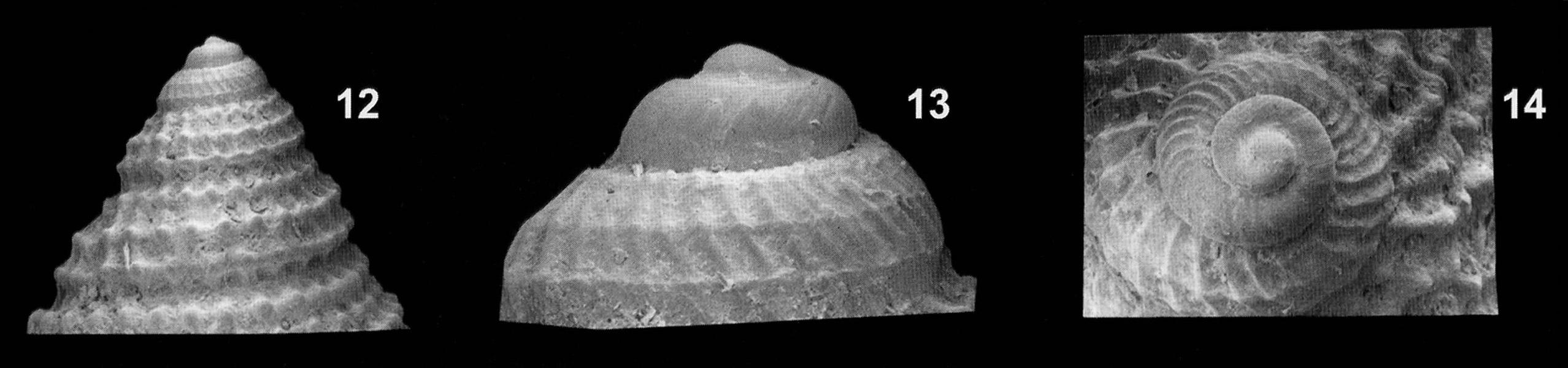 Начальные обороты раковины.      Fig. 12, 13 - вид сбоку; Fig. 14 - вид сверху.