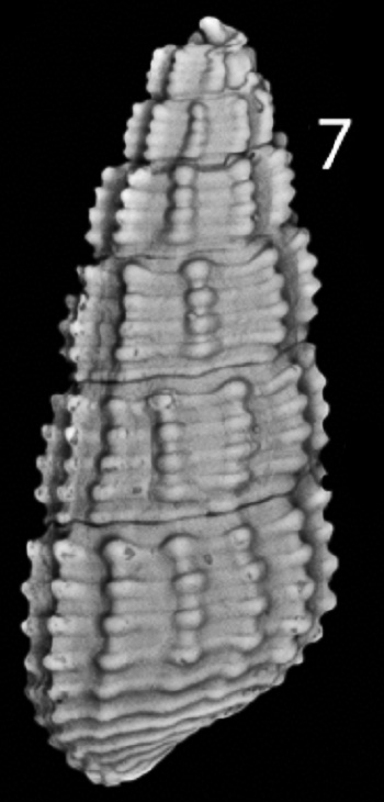 Изображение из: Gründel et Mitta, 2013, табл. 5, фиг. 7 под названием Rhabdocolpus ? sp. 1 (комп. обработка).