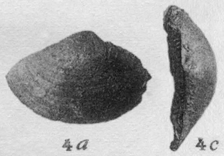 Правая створка раковины. 4 a - вид с наружной стороны; 4 с - вид сверху.