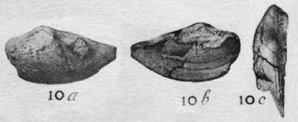 Левая створка раковины. 10 a - вид с наружной стороны; 10 b - вид с внутренней стороны (виден отпечаток правой створки);