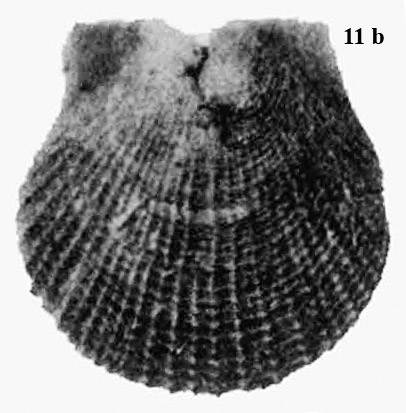 "Pecten cf. inaequistriatus Münster" (скан с полиграфического оттиска; комп. обработка).