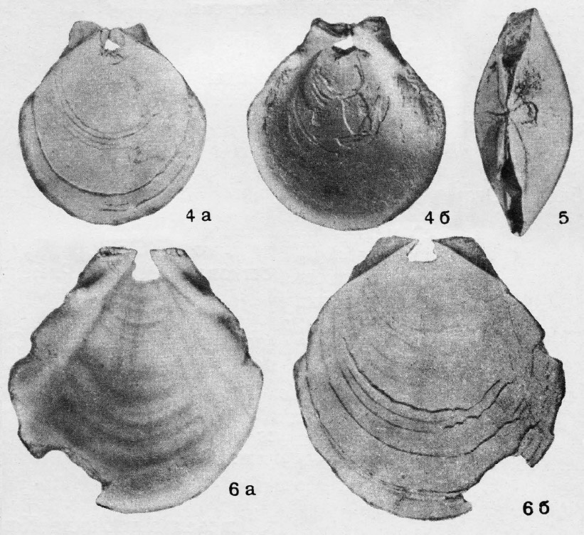 6 б - правая створка раковины (третьего экземпляра), вид с наружной стороны.