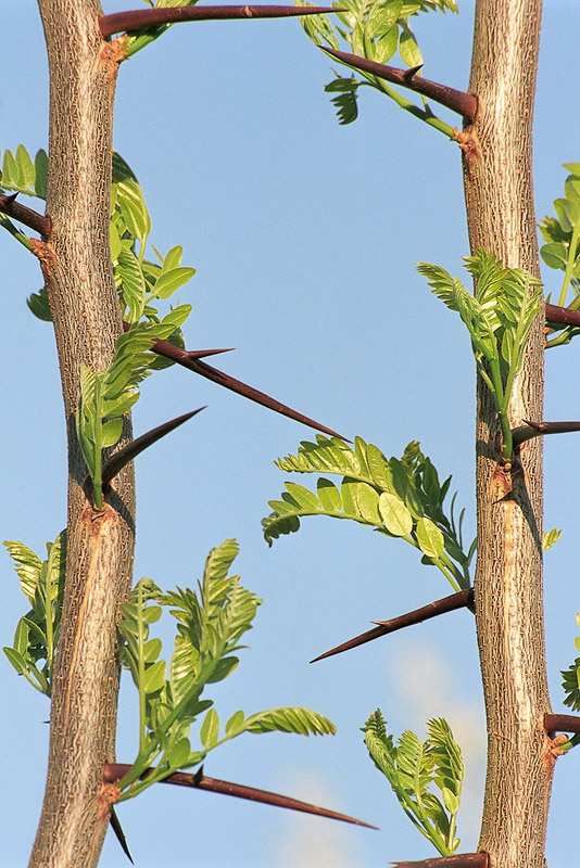 Гледичия сладкая (Gleditsia triacanthos) завезена к нам с востока Северной Америки, её родина - устье
