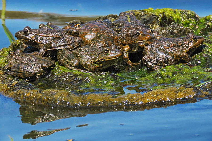Комментарий. Группа озёрных лягушек (Pelophylax ridibundus).