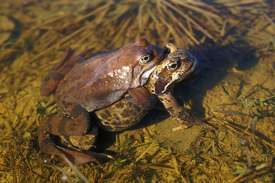 Конец марта. Ранняя и дружная выдалась весна. Озёра ещё скованы льдом, а в лесу лежит глубокий снег. Но на солнечных полянках уже журчат ручьи и распускаются цветы мать-и-мачехи. В неглубокие, хорошо прогретые лужицы после зимней спячки устремились травяные лягушки (Rana temporaria), чтобы спариться и выметать икру. Знают ли они, какая судьба ожидает их потомство?