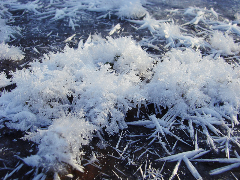 Комментарий. Причудливые ледяные кристаллы на поверхности замёрзшего ручья в морозный день.