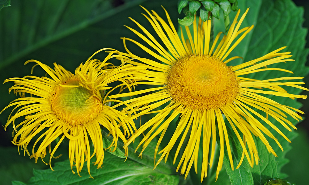 Навсегда запомнились и обширные заросли девясила по берегам горной речки Убин в Краснодарском крае, где эти лучистые "солнышки" сияли щедрыми золотыми россыпями, маня к себе огромных, ярких, невиданных южных насекомых...