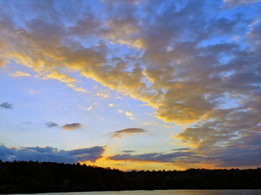 Лишь на несколько минут ветер смог разорвать пелену туч, позволив солнцу эффектно подсветить уходящие облака.
