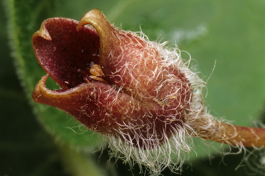 Комментарий. Копытень европейский (Asarum europaeum) - своеобразное растение, которое часто можно встретить в глухих и тёмных лиственных лесах. Его листья ни с чем не перепутаешь - они очень тёмного, изумрудного цвета и имеют округлую форму с выемкой, напоминая след от копытца. Но самое удивительное - как копытень цветёт. Мало кто обращал на это внимание, ведь цветение происходит в самом конце апреля - начале мая. Тогда в лес-то мало кто ходит - уж больно там неприветливо и сыро. Цветки чаще всего прячутся под листьями, околоцветник покрыт густыми мохнатыми волосками, будто зверь лесной и имеет столь редкую "трёхлепестковую" форму. Глядя на такое чудо, вспоминаются исполинские экзоты из влажных экваториальных лесов - непонятно как оно и попало-то в нашу северную природу. Только вот цветок копытня совсем крошечный - около 8 миллиметров, а потому мне пришлось при съёмке использовать удлинительные кольца, чтобы показать такую красоту, что называется, "во весь кадр".