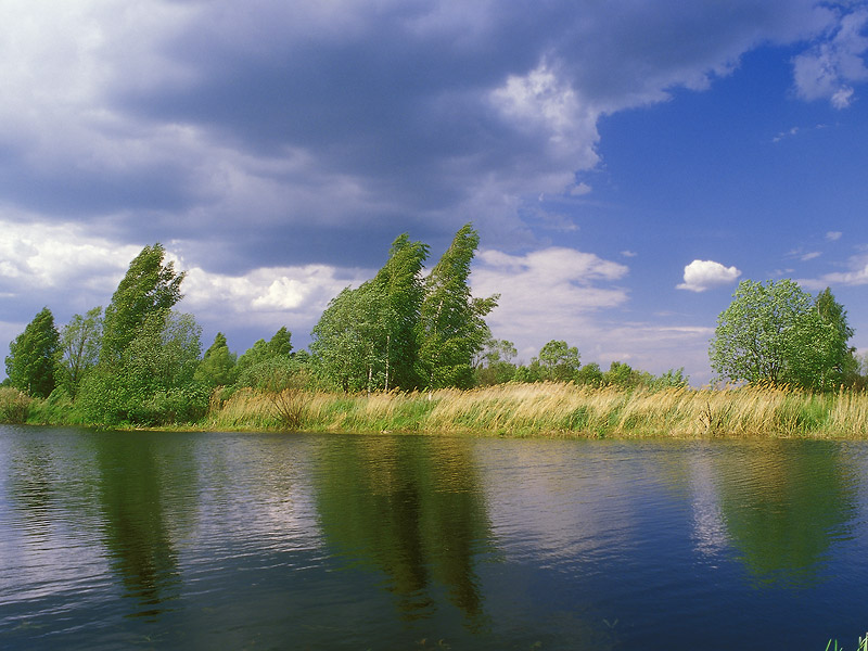 Если летний день с самого утра выдался жарким и душным - ни облачка, ни ветерка - так и знай, быть дождю! А Иваньковское водохранилище и само по себе отличается резкими, внезапными переменами погоды. С севера вдруг налетает неистовый шквальный ветер, нагоняя хмурые тучи и поднимая на водной глади крутую волну. Горе рыбаку в резиновой лодке, оказавшемуся на середине озера! Куда более спокойны заливы и протоки по южному берегу - тут можно укрыться от непогоды.