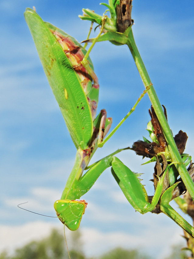 Надо сказать, что это естественная поза насекомого - я не прикасался к богомолу и даже не спугнул его во время фотосессии.
