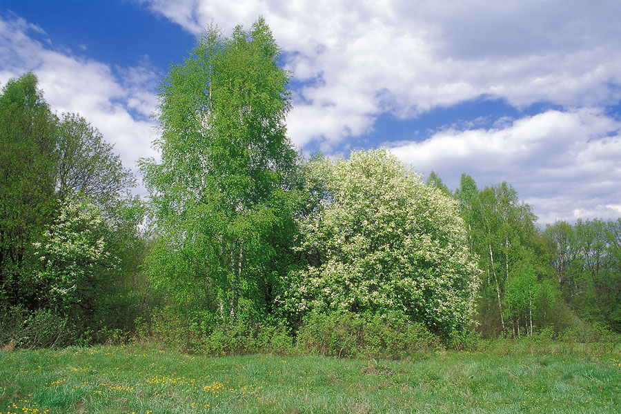 напролёт любоваться преобразившимися берёзовыми рощами. А когда зацветает черёмуха - воздух наполняется