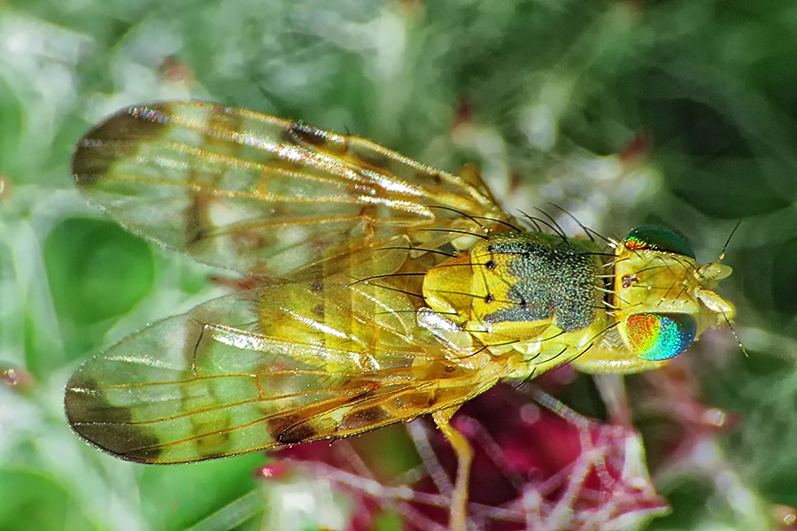 Комментарий. Крохотная мушка Meromyza sp. на соцветии лопуха большого (Arctium lappa).