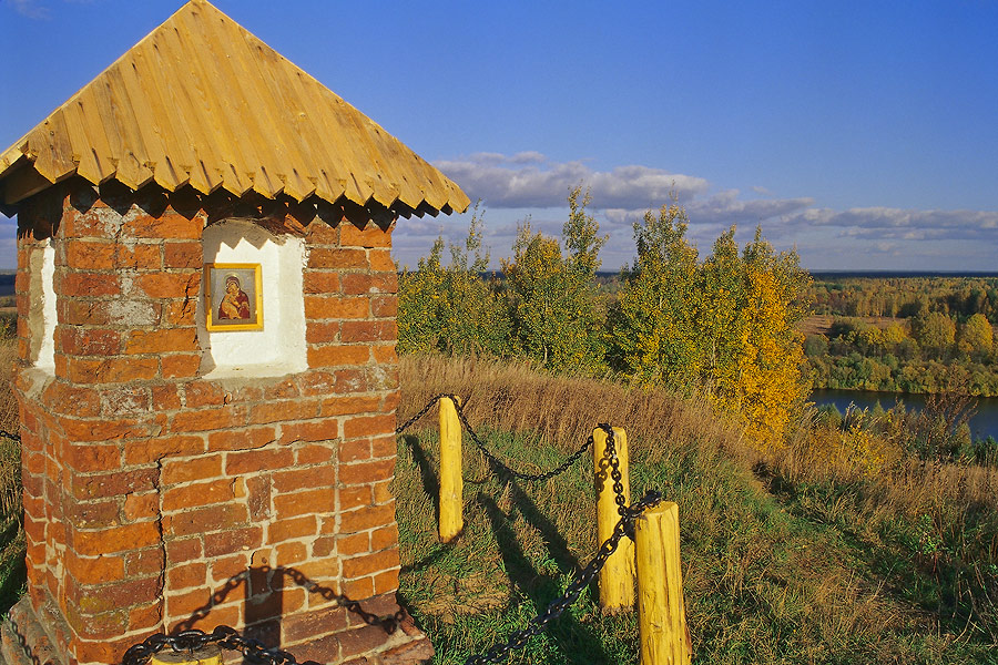 это святое - здесь когда-то находилась старинная часовня. А нынешней осенью я уже увидел над столпом деревянную крышу, а