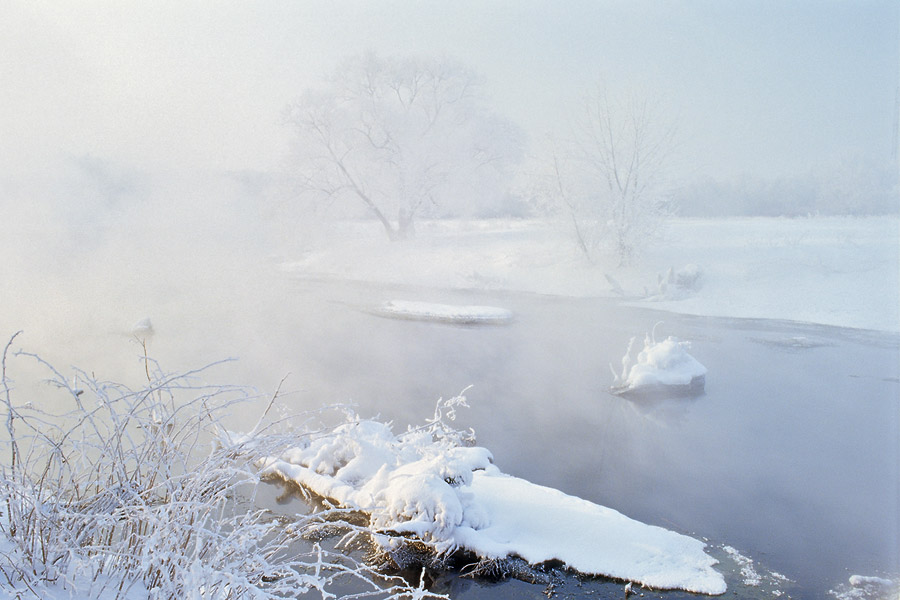 Река - снег, иней и густой туман соединились вместе, окутывая