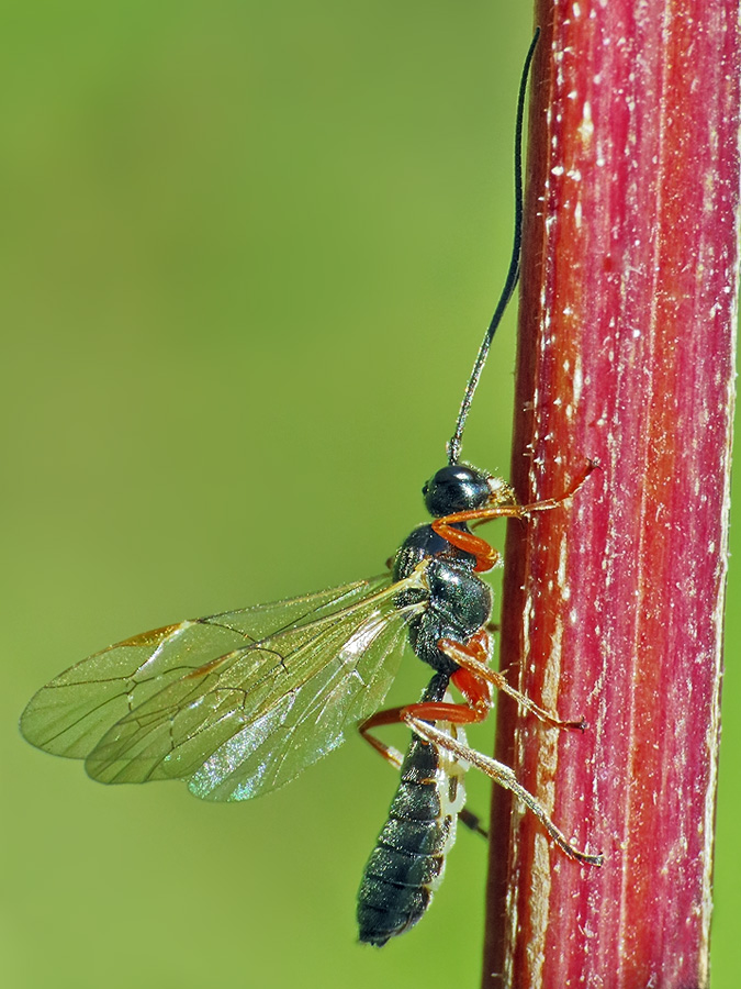 Комментарий. Крохотная оса-наездник, предположительно, Cylloceria melancholica на стебле растения у берега Серебрянки.