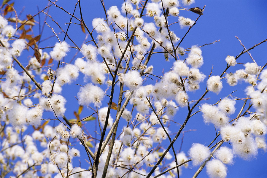 Комментарий. Серёжки ивы (Salix sp.) с созревшими семенами - словно белые пушистые овечки, пасущиеся на небесных равнинах.