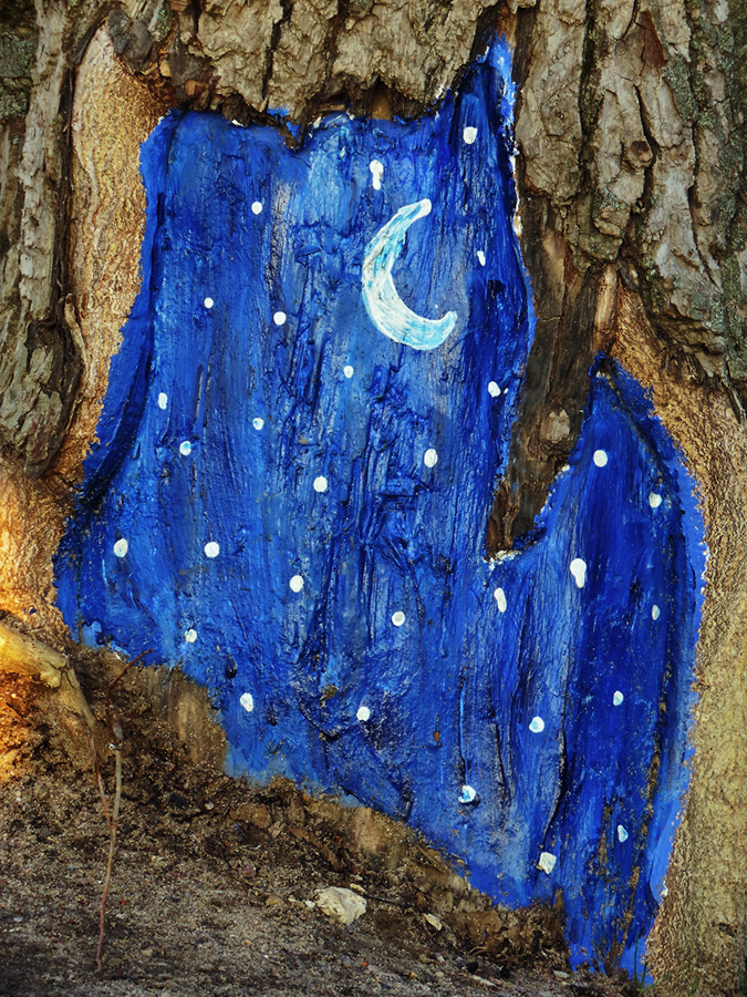 Ночное небо с молодым месяцем и яркими звёздами.