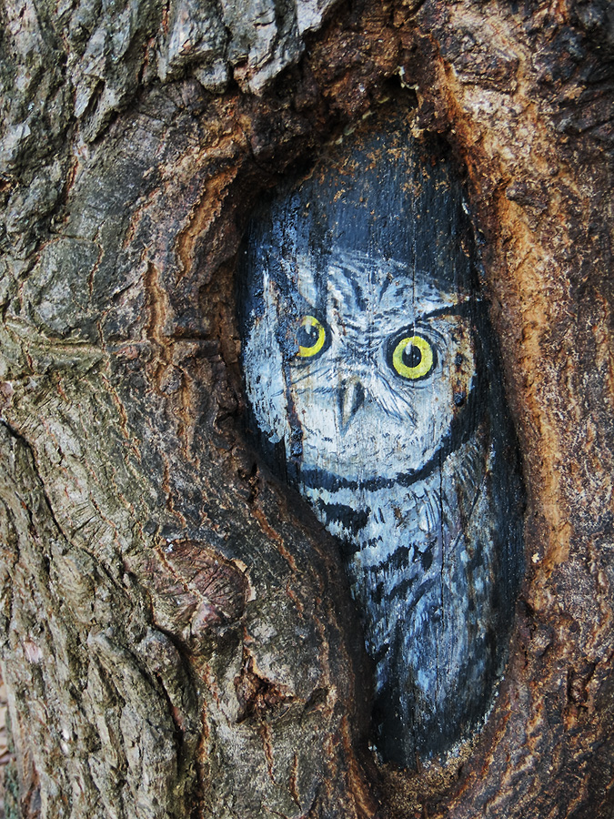 Комментарий. А на этот раз, в дупле притаилась сова. Далеко не все знают, что эти скрытные хищные птицы, ведущие ночной образ жизни, на самом деле обитают в Измайловском парке. Вот только, чтобы их там увидеть, надо быть очень наблюдательным и хорошо изучить их повадки.
