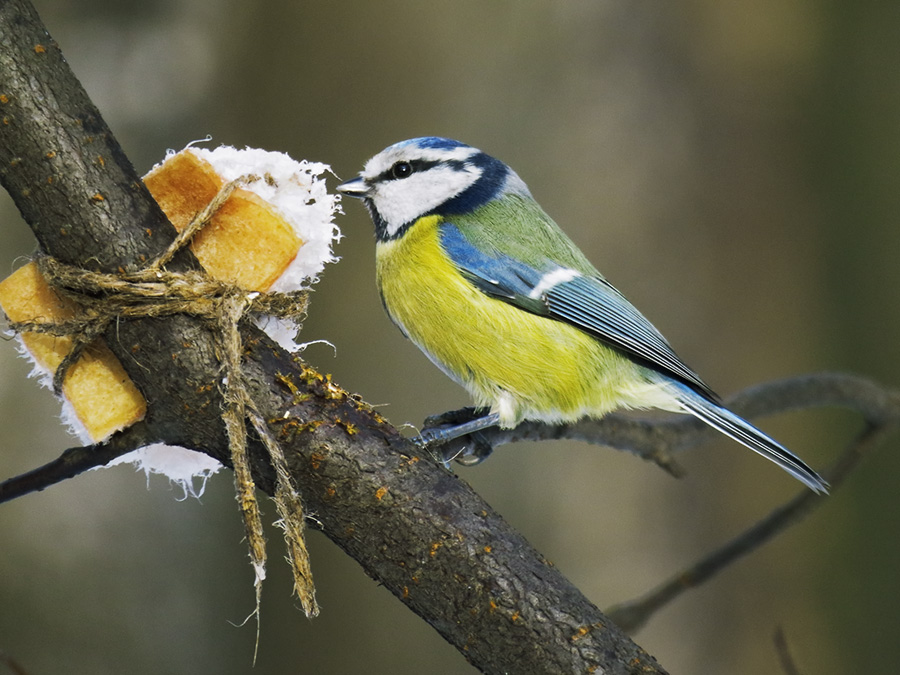 Комментарий. Синица лазоревка (Parus caeruleus) лакомится салом.