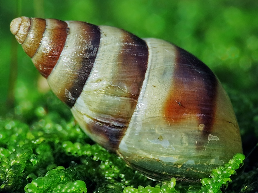 Лёгочная улитка (пока не удалось определить её вид) на поваленном замшелом стволе дерева. Поздней осенью молодые