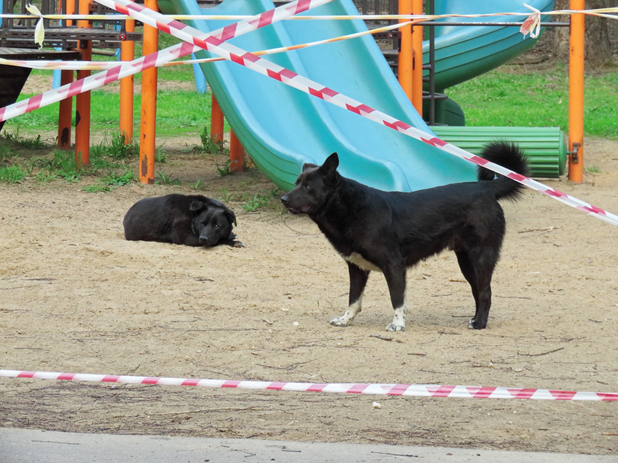 Комментарий. Собаки, обосновавшиеся на детской площадке, закрытой на карантин.
