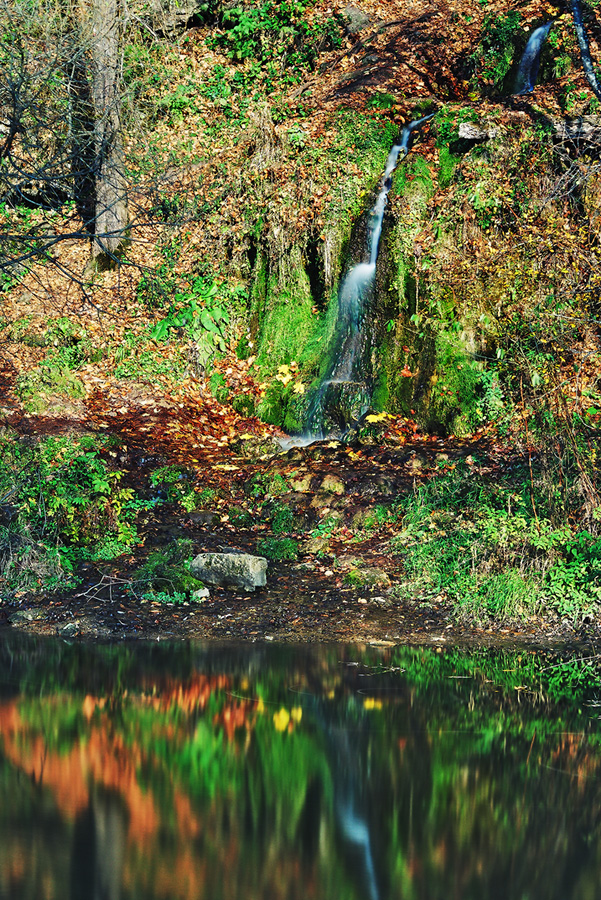 Особенно прекрасен водопад в пору золотой осени, когда склоны оврага усыпаны яркой разноцветной листвой растущих здесь